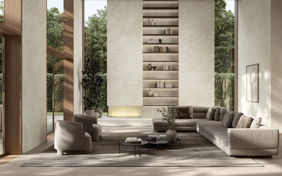 Thanks to the wide range of looks and finishes of Atlas Plan porcelain stoneware slabs, you can reproduce the atmosphere that best suits your needs.
